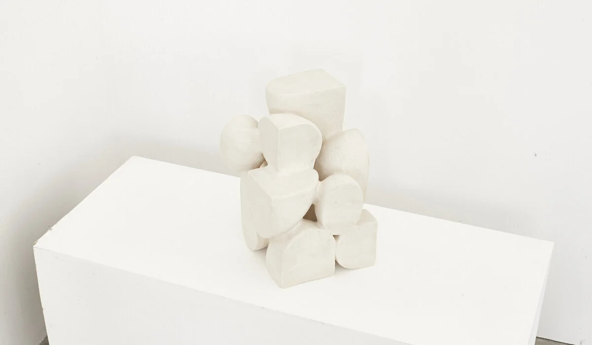 This sculpture is a unique assembly of individually rolled out slabs, carefully slow dried to bone dry state, finished with multiple layers of brushed-on slip on the surface and glazed inside. A piece may be kiln fired once or twice to reach the desired surface texture. Minor flaking may occur due to the nature of the material.
